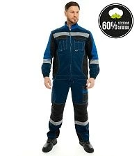 Костюм мужской летний "Формула Коттон" ФП2 (куртка+п/к) т.синий/чёрный/василёк (ЧЗ)