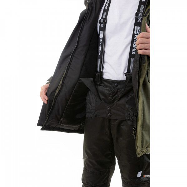Куртка застёгивается сверху и снизу на тракторную молнию с двойной ветрозащитной планкой на липучках и кнопках. Рукав с регулировкой на застёжке-липучке и теплыми манжетами с прорезями для большого пальца не позволят пробраться холоду внутрь рукавов. В талии куртка утягивается эластичным шнуром с фиксатором, что также помогает сохранению тепла.