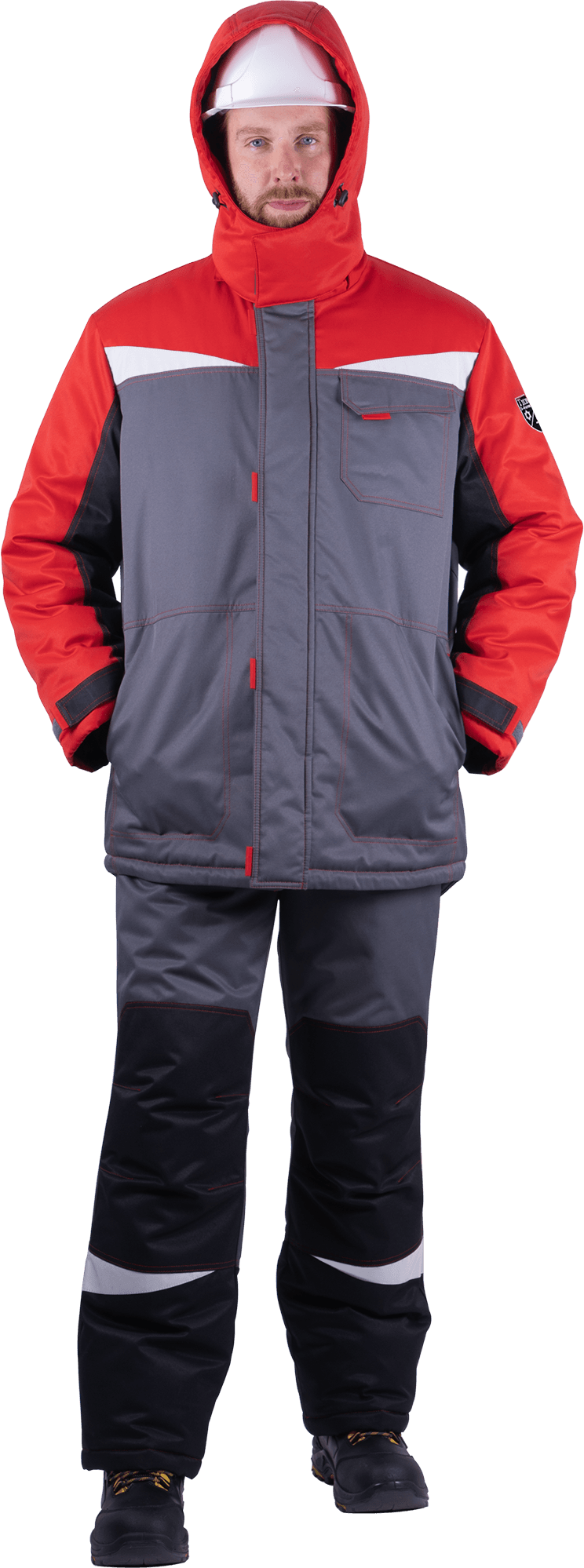 Костюм состоит из куртки и полукомбинезона. В костюме используются световозвращающие элементы фигурной формы.