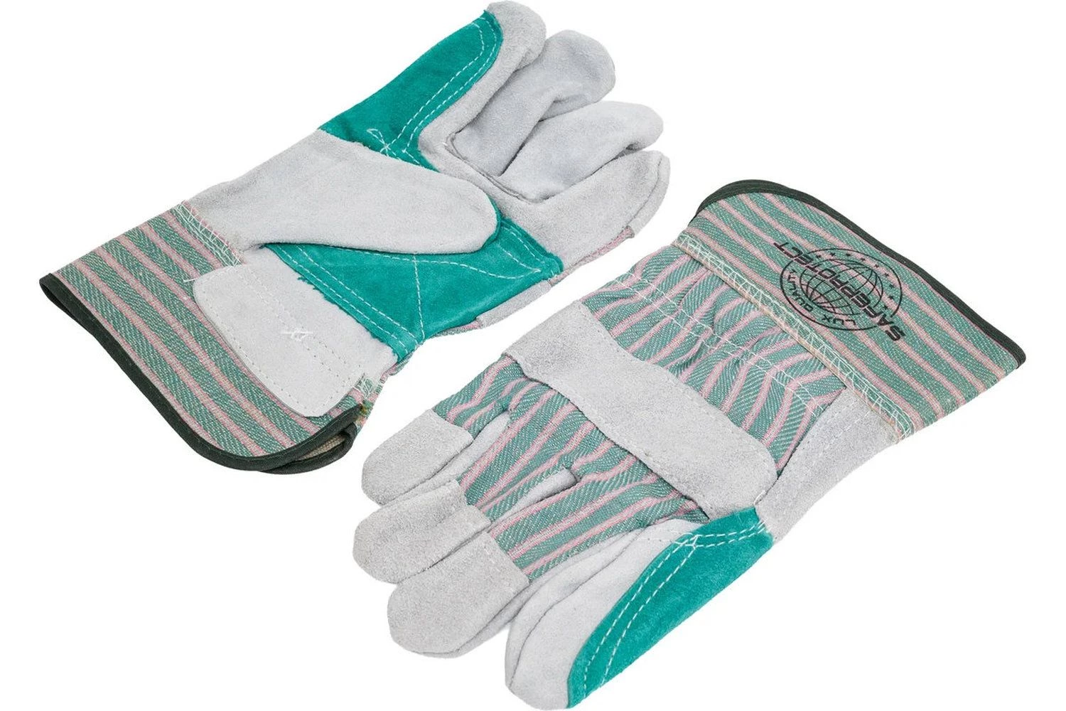 Перчатки САХАЛИН спилковые комбинированные усиленные для защиты от механических воздействий (истирание, прокол, порез). Спилок КРС, сорт АВ (1,4+/– 0,2 мм), шлифованный, серого цвета, дополнительный слой спилка на ладони и пальцах, двойные швы. Вставки из плотной хлопчатобумажной ткани зеленого цвета. Флисовая подкладка на ладонной части и пальцах обеспечивает защиту от швов и создает комфорт при работе. Жесткий прорезиненный манжет (защитная крага) защищает кисть руки от повреждения.