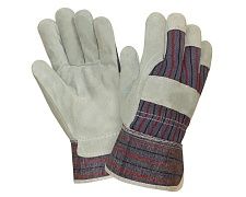Перчатки комбинированные, выполнены из высококачественного спилка КРС и хлопчатобумажной ткани на тыльной стороне перчатки.