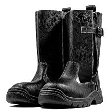 Сапоги из натуральной кожи и искусственных материалов, голенище регулируется пряжкой, высота сапога около 260 мм (от пола), основная стелька из штробельного материала, комфортная вкладная стелька из кожкартона дублированного волокниной, искусственный мех, внутренний металлический подносок до 200 Дж, удобная колодка анатомической формы.